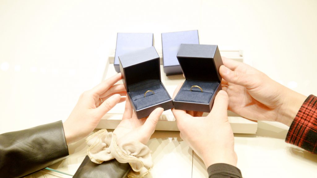 試作リング完成後、指にはめていただき雰囲気を確認していただき、